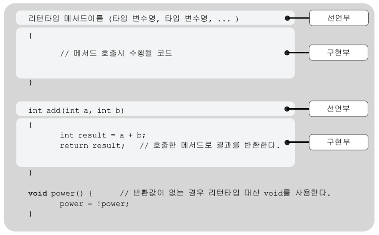 단 , 반환값이 없는 경우 반환타입을 'void'를 적어야 한다.